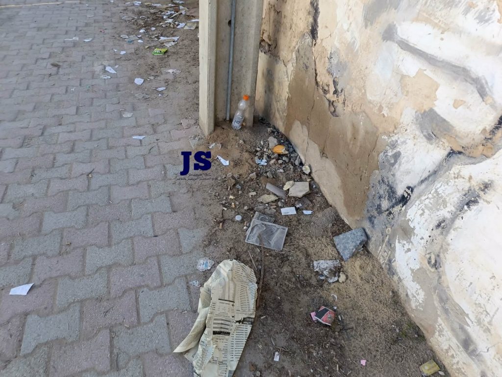 كما ان البلديات مقصّرة في رفع بقايا البناء وجمع الاتربة والرماد المُكدّس بقايا شيشة المقاهي المحاذية للمكان وهو ما يجعل الطريق في حالة كارثيّة ومظهر تخلّف لا يليق بمدينة صفاقس