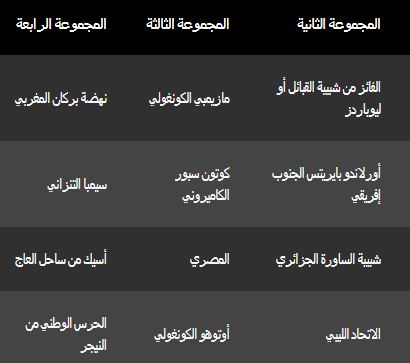 أسفرت قرعة دور المجموعات لكأس الـ’كاف’ عن وضع النادي الصفاقسي في المجموعة الأولى رفقة بيراميدز المصري وأهلي طرابلس الليبي وزاناكو الزمبي، فيما كانت بقية المجموعات كالاتي: