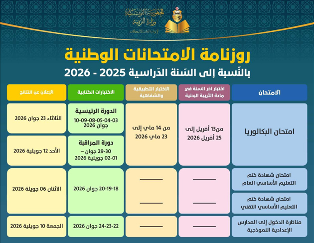 نشرت وزارة التربية، اليوم السبت، رزنامة الامتحانات الوطنية للسنة الدراسية 2025-2026.