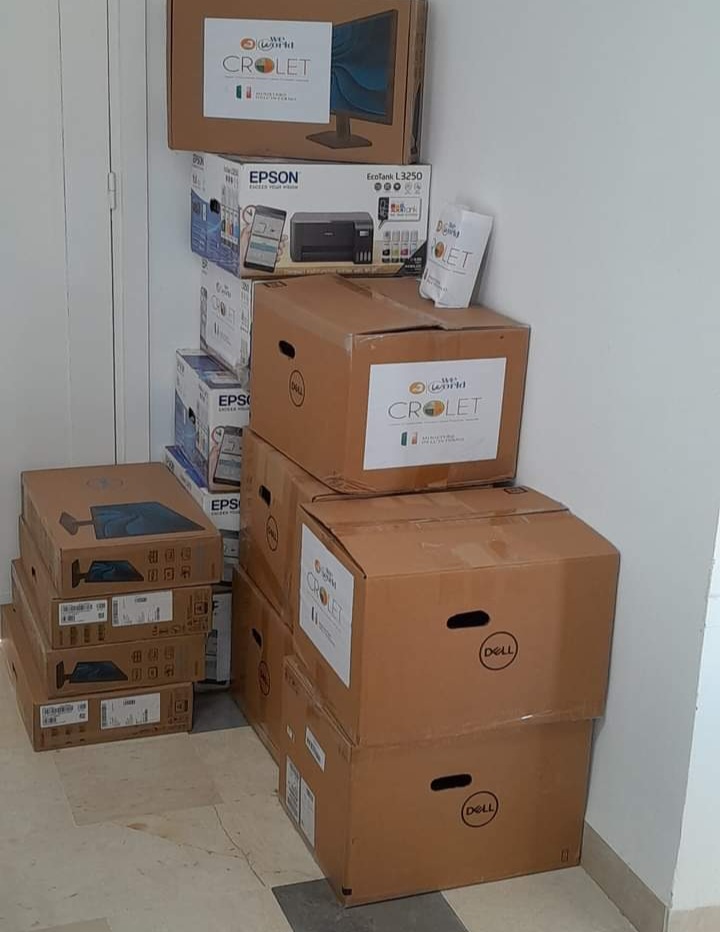 في إطار مشروع CROLET المنجز من طرف المنظمة الإيطالية we world gvc بتمويل من وزارة الداخلية الإيطالية و بالشراكة مع eco ، cites و جمعية سليمة تسلمت بلدية سيدي بوزيد معدات اعلامية لاستغلالها في مصلحة الحالة المدنية و تتمثل المعدات المذكورة في :